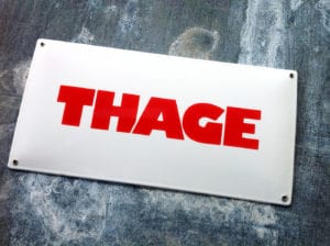Tyylikkäät emalimerkit ”kelluvat” julkisivussa. Avaimenreikiä sisältävät välikkeet, jotka on hitsattu taakse ennen emalointia.